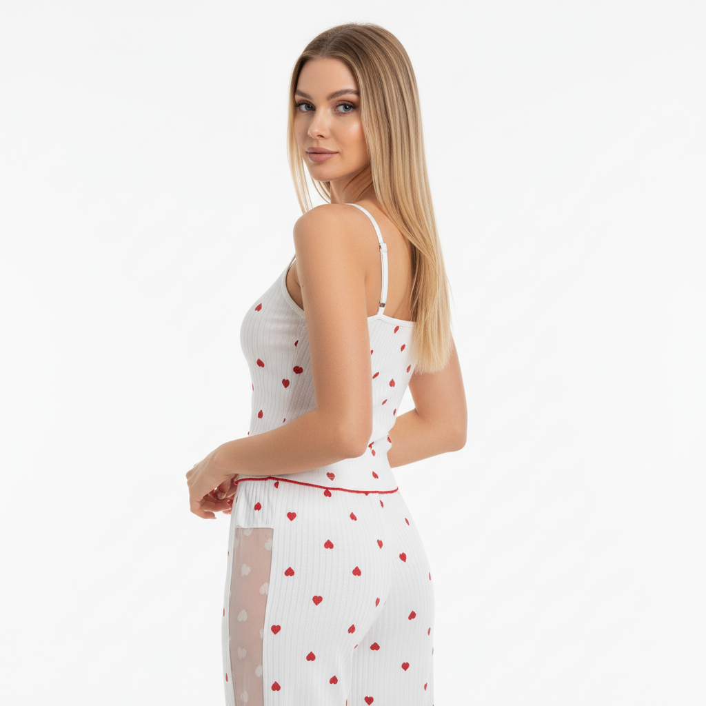 Honeydoll Heart Charm Ribbed Nightwear Set – Premium Cami Top & Lounge Pants