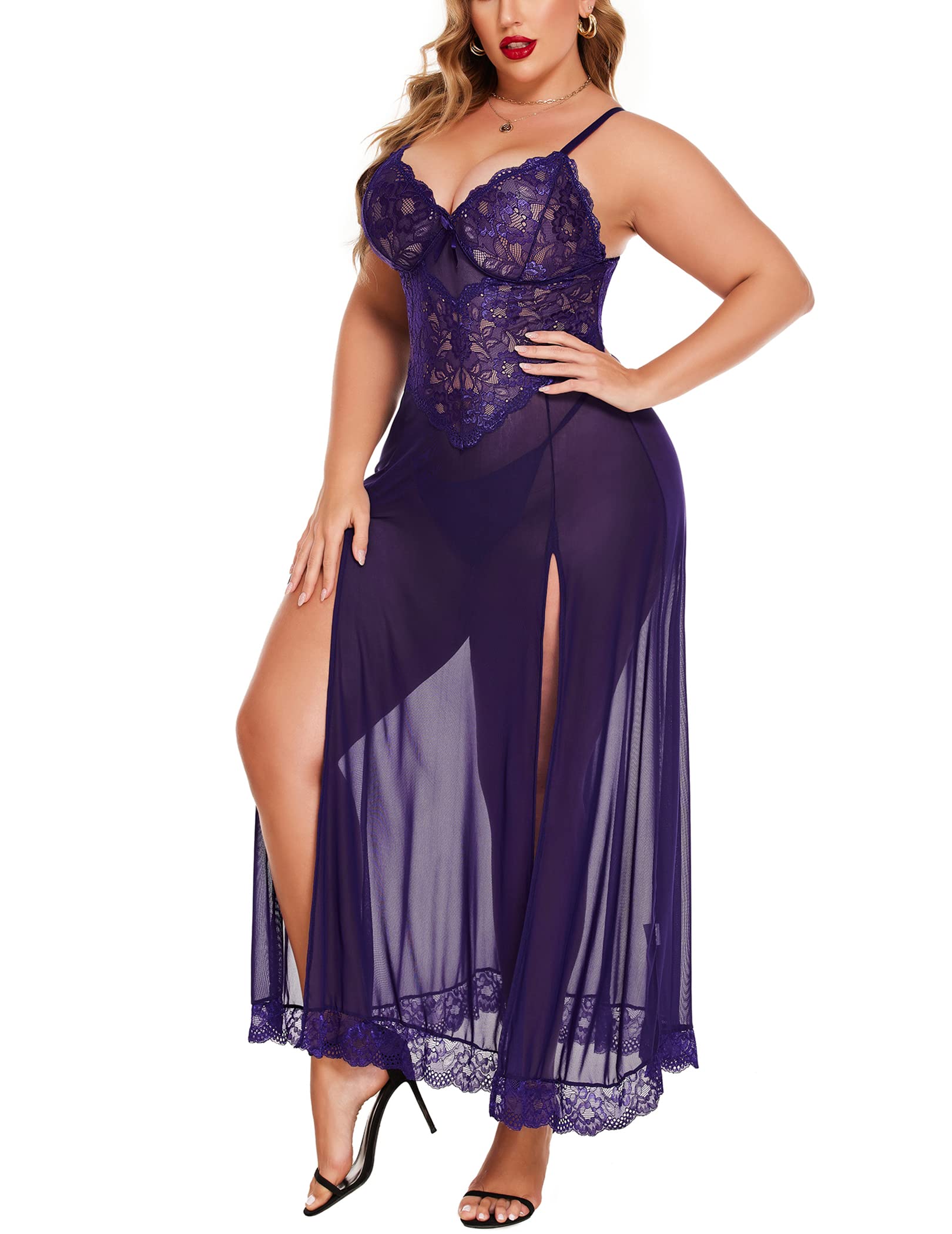 The ‘Scarlet’ NAVY Lace Bodice Floor-Length Lingerie Gown